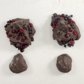 贅沢に2種のダイスカットチョコレートを使用し、奥行きのある味わいに仕上げました。