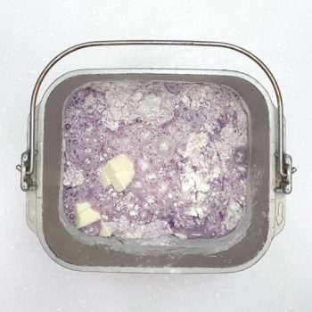 生地材料を全てホームベーカリーへ入れて、一次発酵まで行います。 (生地作り約20分、発酵約40分) -