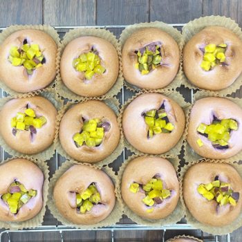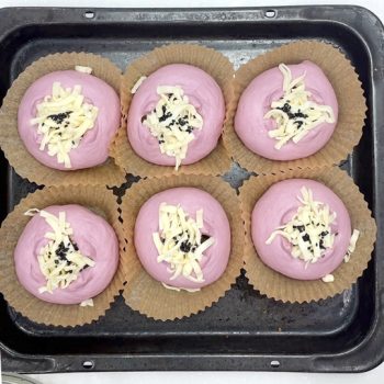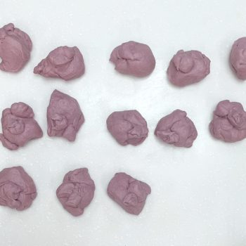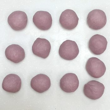 卵を使わないことで、紫芋パウダーが変色せずに綺麗な紫色の生地に仕上げました!