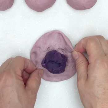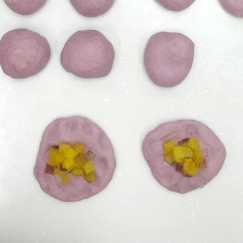 生地はそのままで、さつまいもダイスを包み込みます。 -