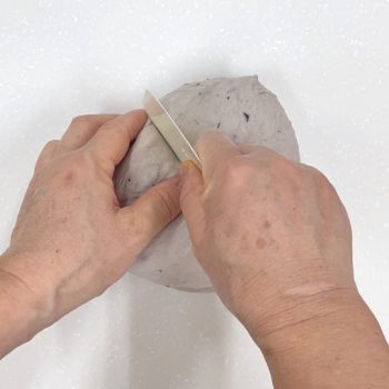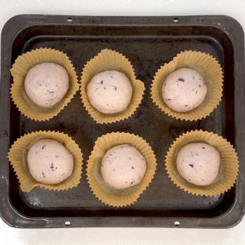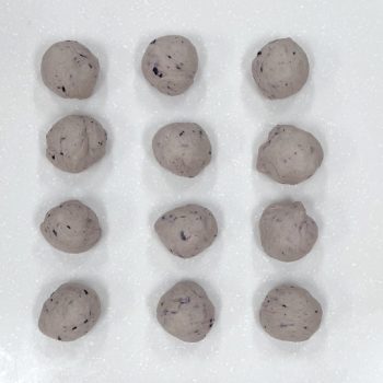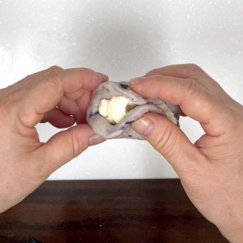 生地を平らにし、その上に下準備で作ったチーズクリームをのせて包み込み、丸めます