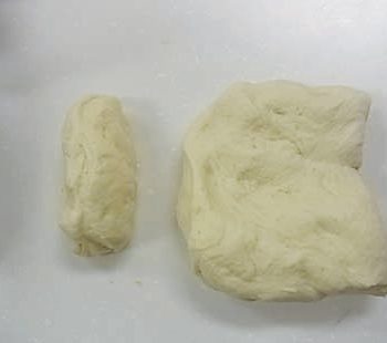 分割方法 1)生地を135gと残りの生地に分ける。 2)135gの生地を9等分する。(白生地)