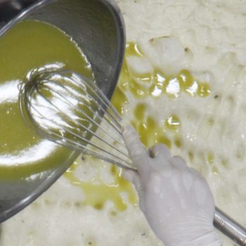 オリーブオイルを少しずつ加える。