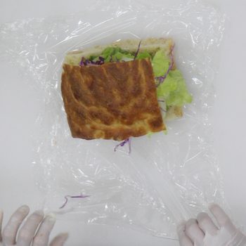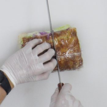 ラップを巻いた上からハーフカットする。