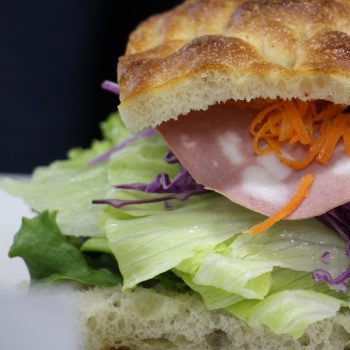 季節の野菜を使った鮮やかなフォカッチャサンド、野菜もたっぷりとれるので大満足です。