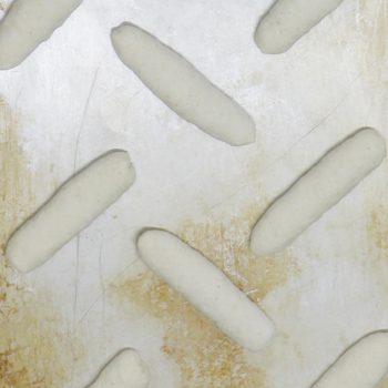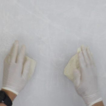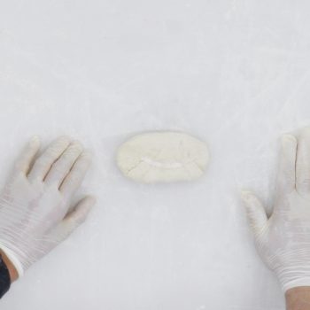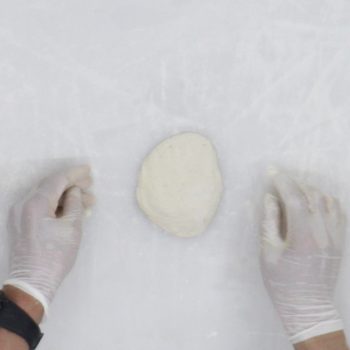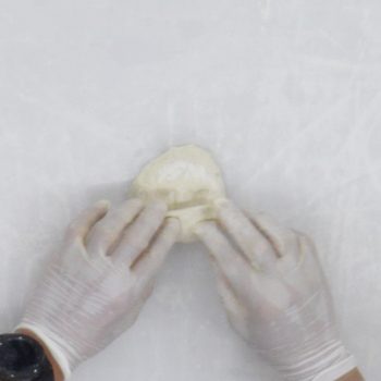 分割した生地を上から押さえて平らにする。