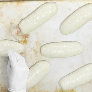 17~18℃に復温した後、70gずつに分割する。