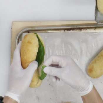 しっとりソフトなパンに、トマトとモッツァレラチーズ、バジルをサンド。