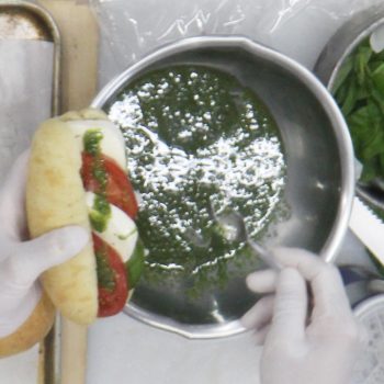 バジルペーストをお好みでかけ仕上げる。