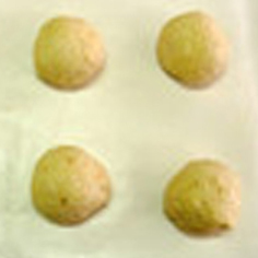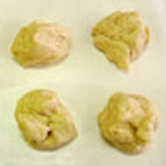 一次発酵完了後、生地を取り出す。約60gずつに分割し、丸め直し、ベンチタイム。(15分)