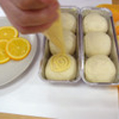 発酵させた生地の上にアーモンドクリームを絞り出します。