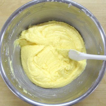 メロン皮を作ります。バターを柔らかくして、グラニュー糖、卵の順に加えて、その都度混ぜます。