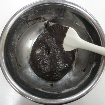 【1】から100gを別のボウルにとりわけ、ブラックココアを加え、混ぜ合わせます。
