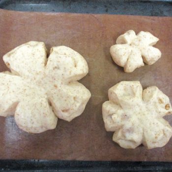 35~40℃で約30分二次発酵を行い、180~190℃に予熱したオーブンでそれぞれ焼成します(大:13~14分、中:10~11分、小:7~8分)