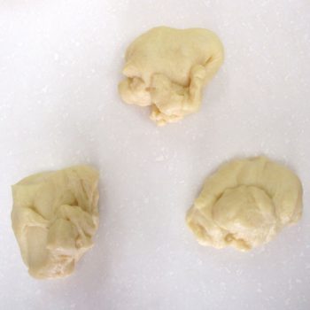 表面に塗卵し、アーモンドスライスとグラニュー糖を乗せ、 180~190℃で予熱したオーブンで約15分焼成します