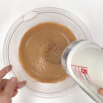 予めふるった粉を加えて滑らかに混ぜ合わせます。(ハンドミキサーで約1分程)