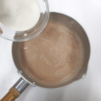 カカオーロと牛乳を鍋に入れ、1を加えて全体に溶け込むように混ぜます