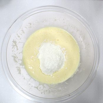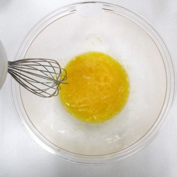 全卵をボウルに溶きほぐし砂糖を加えて白っぽくもったりとするまで泡立てます