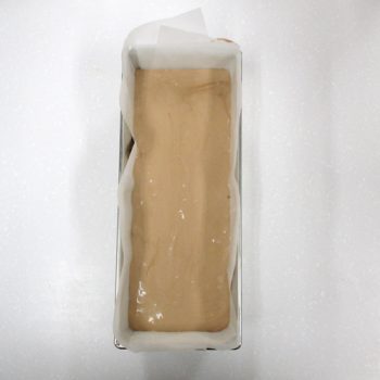 滑らかに混ぜ合わさったらオーブンシートを敷いたパウンド型に流し入れ、170℃で約50分焼成します。