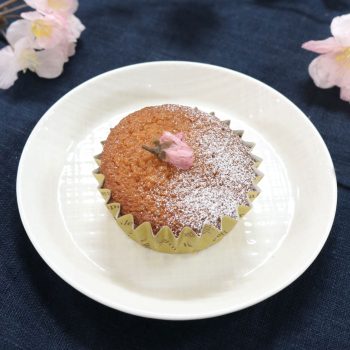 粗熱を取った後、トッピング用パウダーシュガーや塩抜きした桜の花を飾って完成です