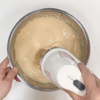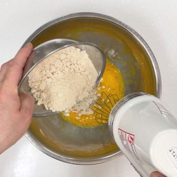 全卵をボウルに入れて、溶きほぐし和三盆糖を加えて白っぽくなるまで泡立てます