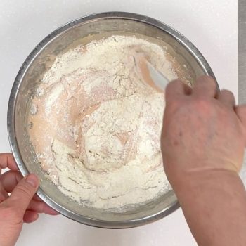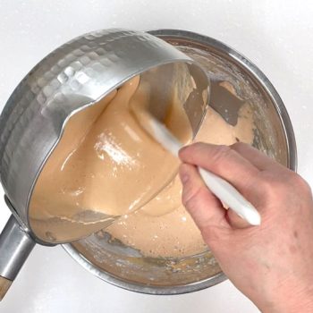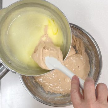 4の生地の一部分をとって、弱火で溶かした【C】に加えてよく混ぜます