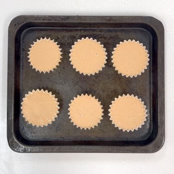 生地を絞り袋に入れて、カップに流し入れて(1個あたり40~45g)170℃で約20分程焼成します