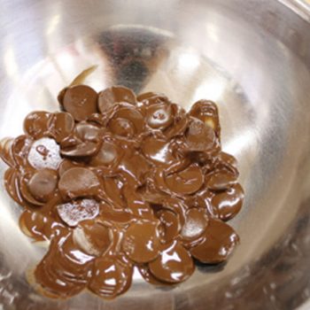 ボウルにチョコレートを入れます。この時に軽く湯煎にかけ、半分くらい溶けた状態にしておきます。