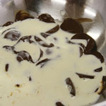 【1】のボウルに温めた生クリームを注ぎ、10秒ほど置きます。