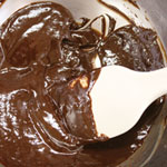 ゴムべらでゆっくり混ぜます。チョコに生クリームを吸わせるように混ぜます。つややかになったらOKです。