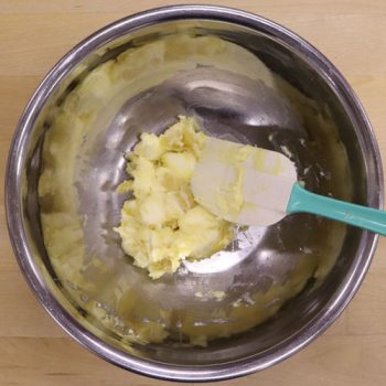 ボウルにオレンジマジパンを入れて柔らかく練り、バターを加えて滑らかになるまですり混ぜる