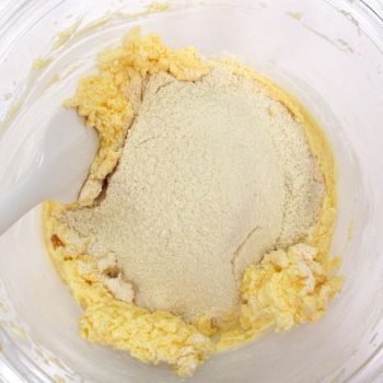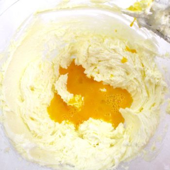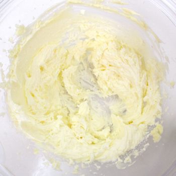 ボウルに常温に戻したバターを入れ、柔らかくなるまで混ぜる。そして数回に分けて砂糖を加えよくすり混ぜる。