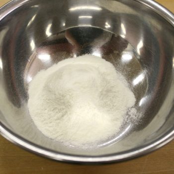 ボウルにカスタードパウダーを用意し、水を加え静かに混ぜる。そこにオレンジエッセンスも加える。