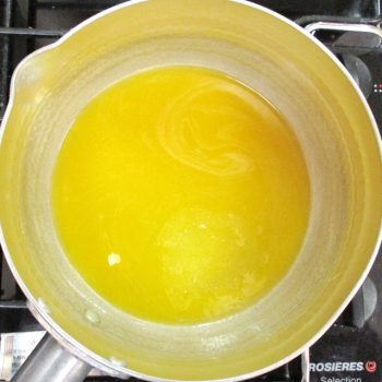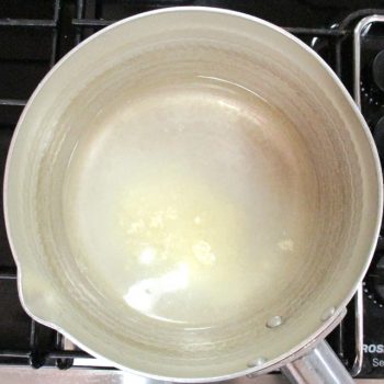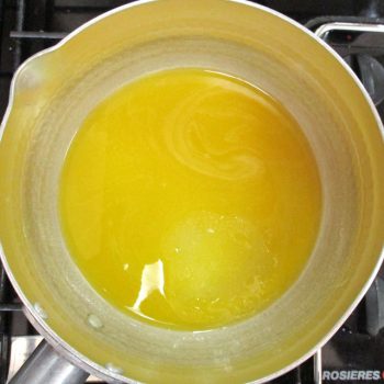 火を止めて、【5】で湿らせたゼラチンをいれて混ぜる。