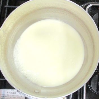 鍋に生クリームを沸かして中心まで沸いたら【1】に加えます