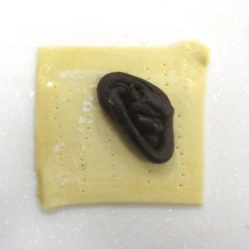 パイシートを室温に戻し、4等分にしたらピケをして【4】のガナッシュを絞り入れます