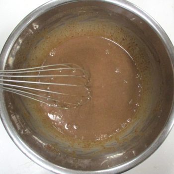 ボウルに入れたチョコレートに沸かした牛乳を加えて溶きのばして混ぜます