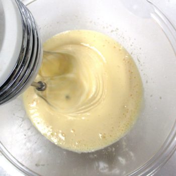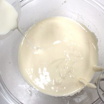 生クリームを加えて、さらに泡立てます