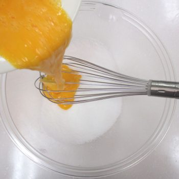 あらかじめふるっておいた粉類を加え、ダマにならないように混ぜます