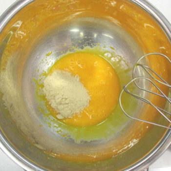 卵黄をボウルに入れ、【A】きび砂糖を加えてすり混ぜます