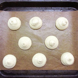 絞り袋に生地を入れて、直径4~5㎝に絞り出す。