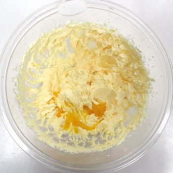 白っぽく混ざったら、全卵2個を溶きほぐし、数回に分けて加えながら、その都度しっかり混ぜます