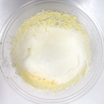 ボウルに室温に戻したバターを入れ柔らかく混ぜます 砂糖を数回に分けて入れ、その都度よく混ぜます