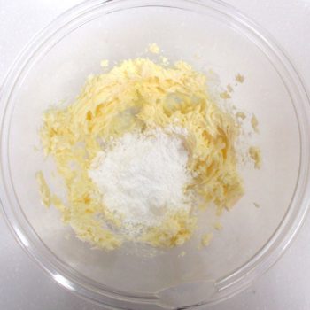 数回に分けて粉糖を加え、その都度空気を含ませるようによく混ぜます