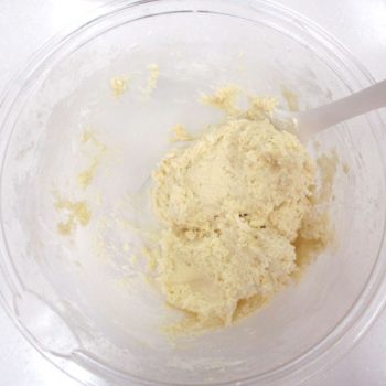 ふるった薄力粉を一度に加えて切るように混ぜ、一塊にします