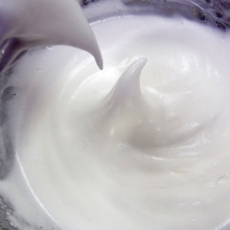 別のボウルに卵白を泡立て、泡立ってきたら少しずつ砂糖を数回に分けて加え、角が立つまで泡立てる。
