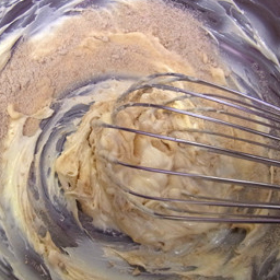 ボウルにバターを入れて、柔らかくクリーム状にし、きび砂糖を加えてすり混ぜる。