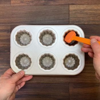 生地を静かに混ぜ、型に等分に流し入れます。 (一度生地を濾すと良いです。)