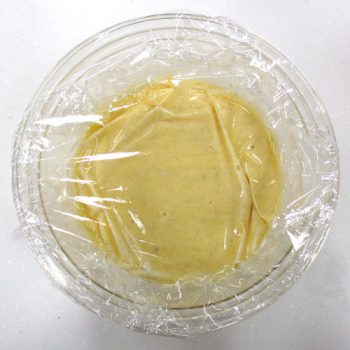 生地を冷蔵庫から出して生地温度を戻します。 生地の温度を戻している間にクリーム状にした無塩バターを型に塗ります。