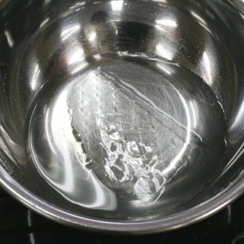 ☆クリームチーズ生地を作りましょう! 冷水に板ゼラチンを入れ、しとらせます(B)